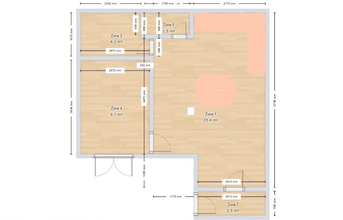L'appartement du rez de chaussée est un deux pièces de 43 m2 avec salle de bains et WC.